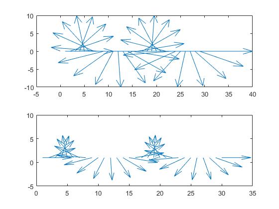 quiver(t,y,u,v) %在座標軸為t和y的點上繪出一個箭頭