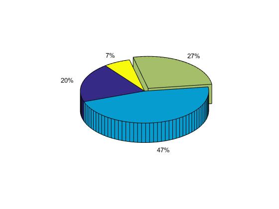 pie3(a1,[0 0 1 0] ) %畫出向量[3 7 4 1]的3維圓形圖