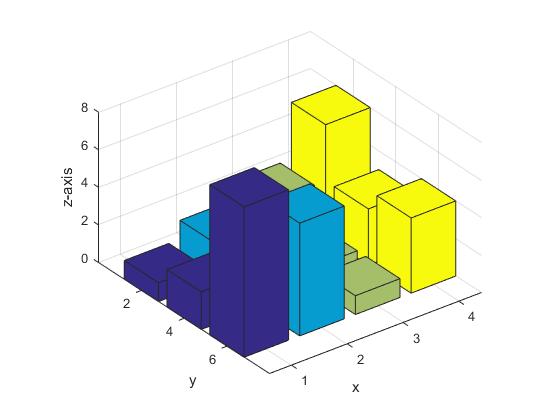 bar3([2 4 6],a1) %把陣列裡同一列的資料放在相同的y刻度[2 4 6]上