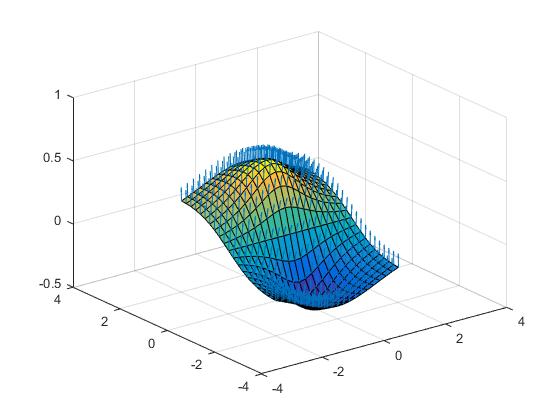 hold on %同時畫出surfnorm(xx,yy,zz)和quiver3(xx,yy,zz,u,v,w)
