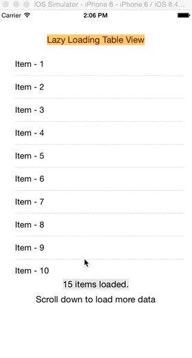 With this UITbaleView subclass, you can implement, in a very easy way, a table view with a lazy loading system when the table view is scrolling down.