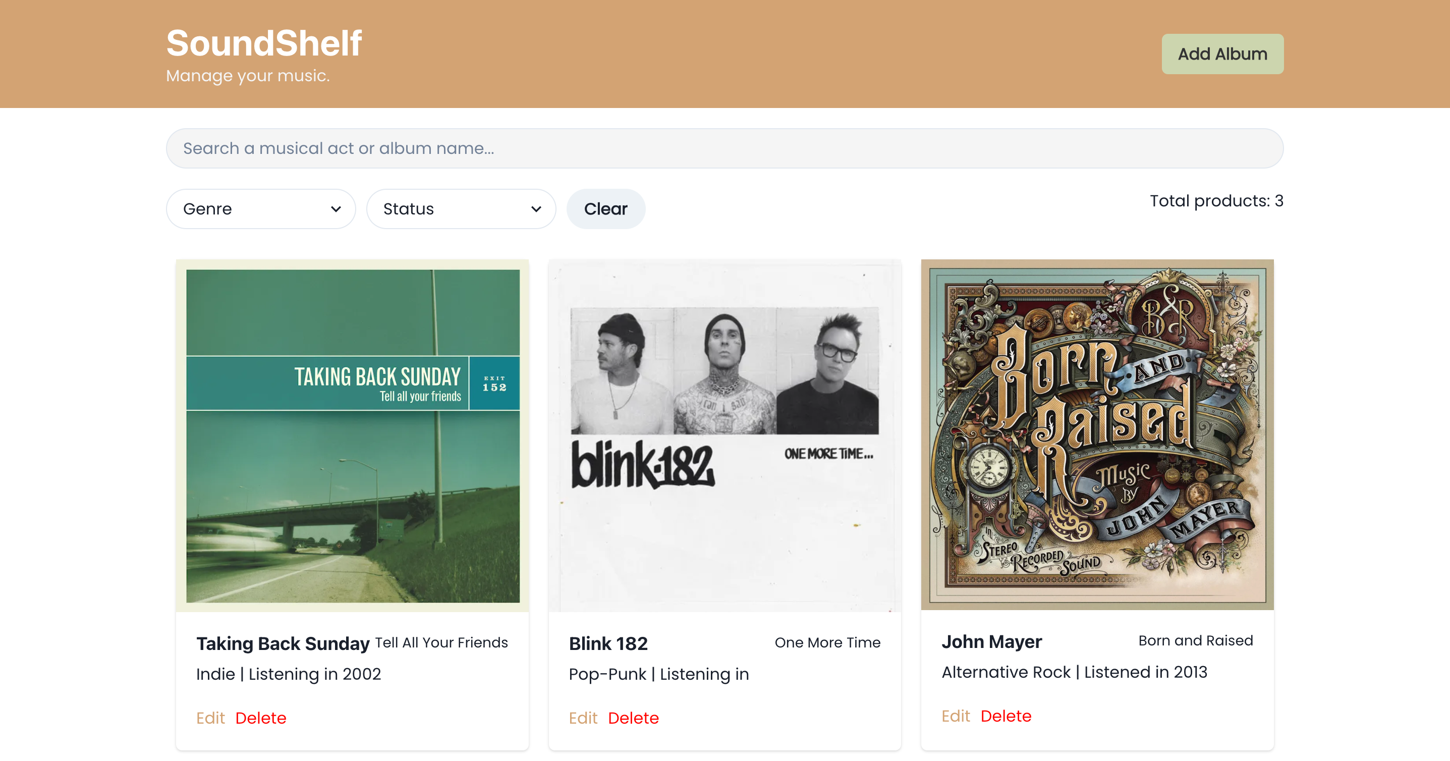 A full-stack music album organization and listening-status tracker designed to centralize your collection with fast search, clean filtering, and simple album management.