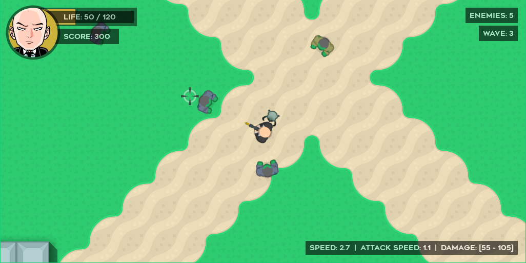 - Dynamic growth of the attributes of the enemies, according to the current game wave
