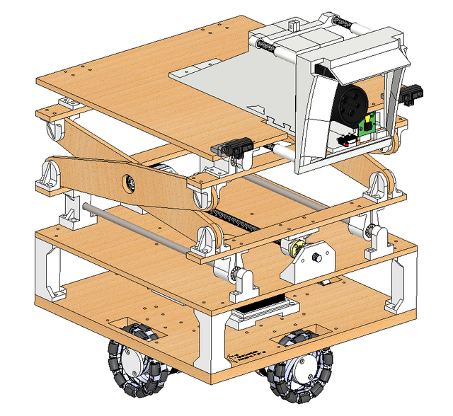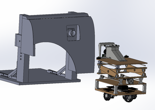The robot is controlled by a raspberry pi, using computer vision to determine the location of the port. Two IR distance sensors on each side of the bot determine the yaw of the bot with respect to the side of the car, and allow the bot to align itself perpendicularly. Stepper motors arranged in a square at the bottom of the bot allow the robot to rotate, and move in a straight line until it's directly in front of the charging port. Another stepper motor attached to a lead screw control a scissor lift mechanism that lifts the charging handle to the same height as the port. Finally, the robot moves forward to plug the handle in, where a limit switch lets the bot know when the handle is fully plugged in.