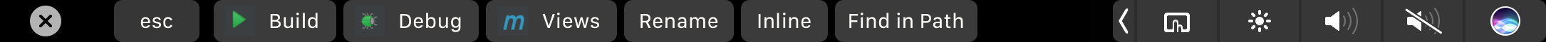 A basic TouchBar configuration for IntelliJ. It includes buttons for build, debug, change between views and execute a few actions. This is how it looks: