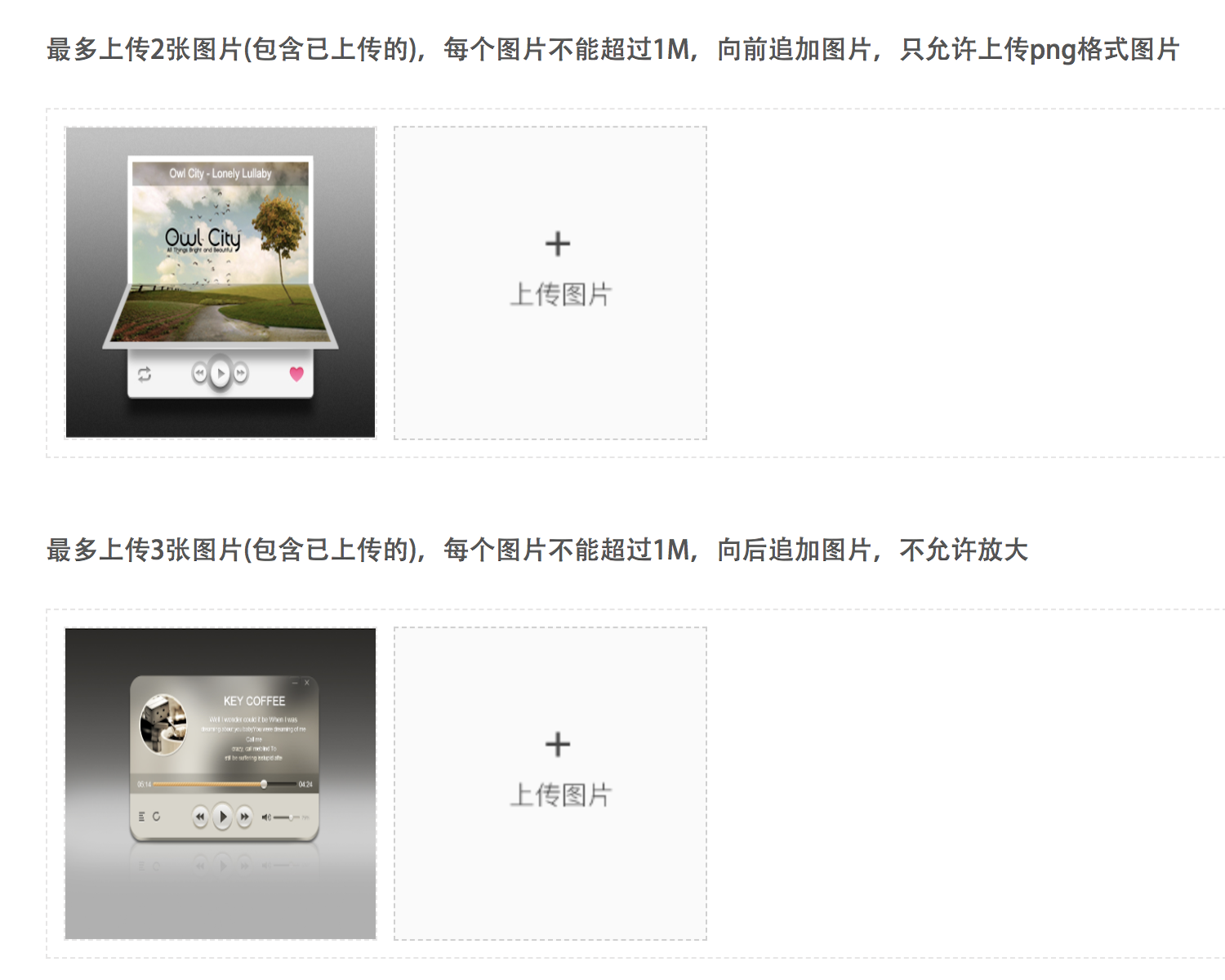 - 新增追加方式配置参数appendMethod,可以指定上传图片在已有图片前面追加还是后面追加