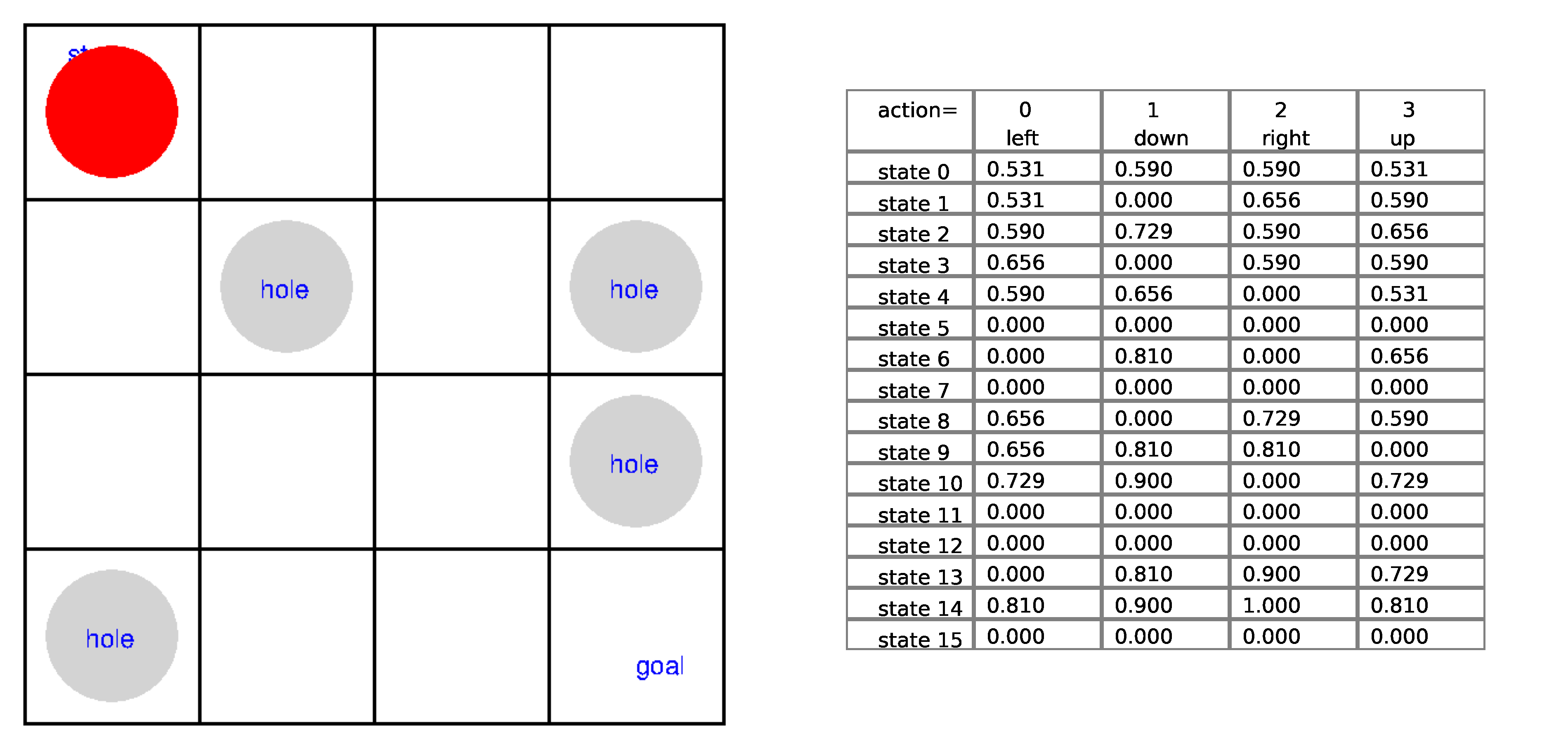 Show in the Frozen Lake game how the tabular Q-learning works in each step of the game. You'll put the game board on the left and the Q-table on the right. You'll highlight the row corresponding to the state and compare the Q-values under the four actions. You'll then highlight the best action.