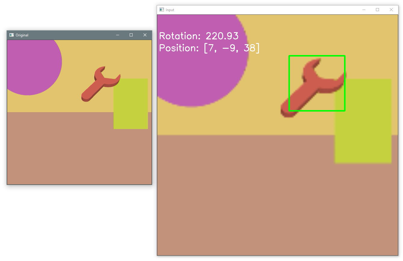 This is a method and a pipeline for development of convolutional neural network designed to predict position in 3D space of specified object as well as its rotation in one axis. Additionaly model predicts the bounding box. Created as an engineering thesis.