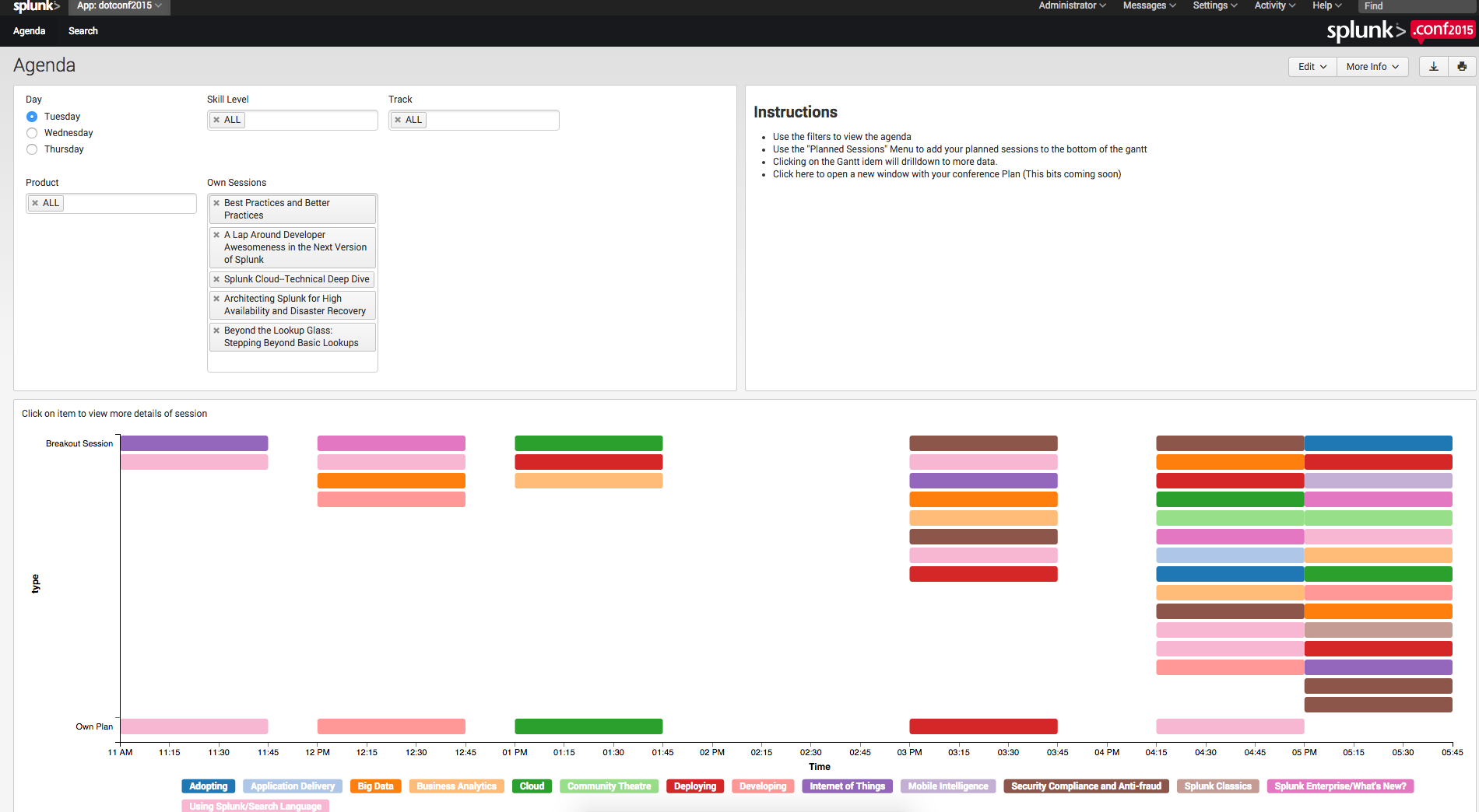 This Splunk app allows you to view,filter and plan your sessions from Splunk .Conf2015