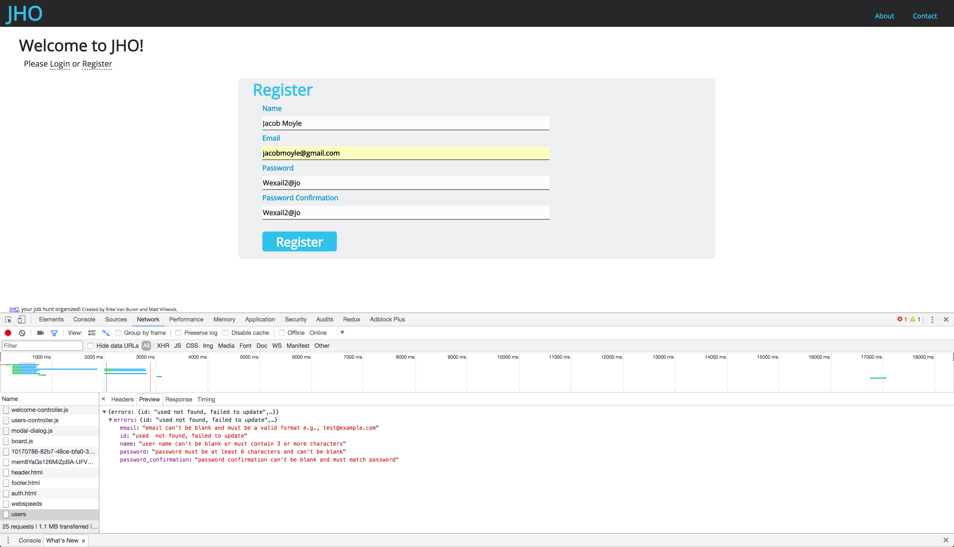 Attempted to register on