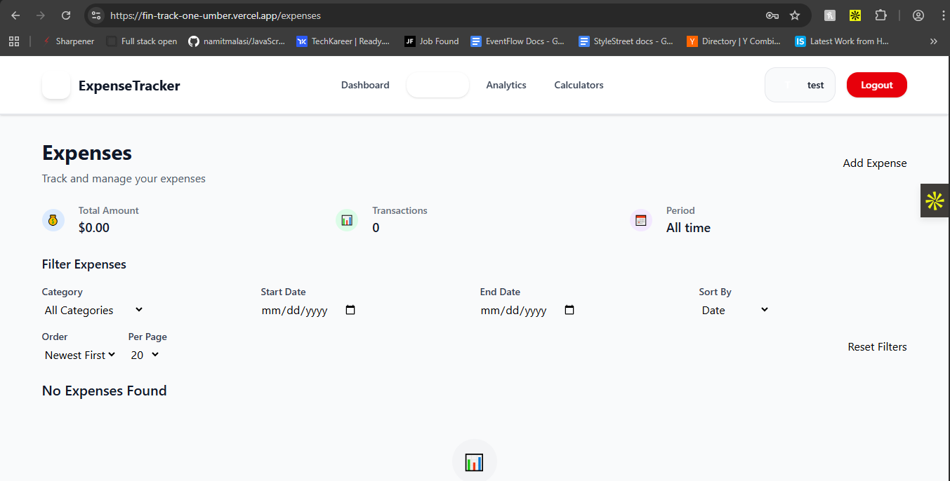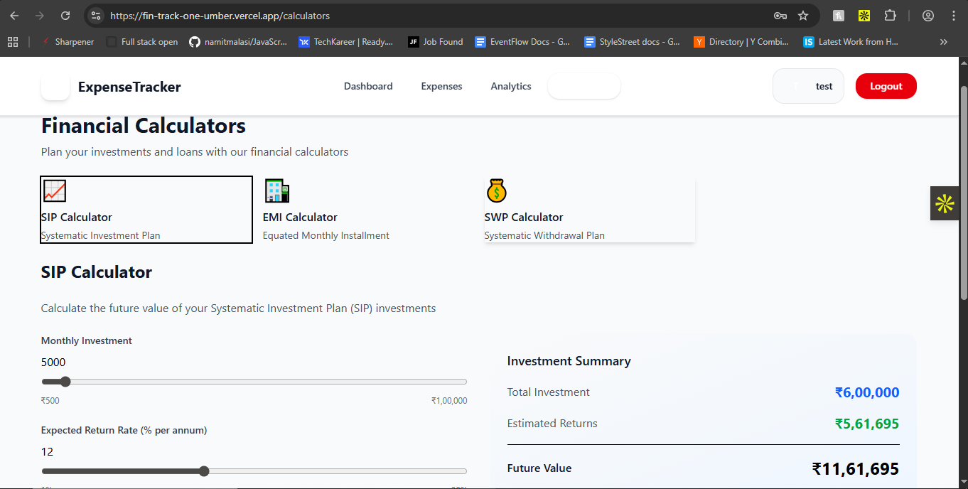 - Developed full-stack MERN expense tracker with JWT authentication, realtime expense tracking, interactive dashboards, and financial calculators (SIP, EMI, SWP etc).