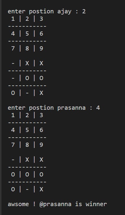 This game allows 2 players to play along with winner detection algorithm