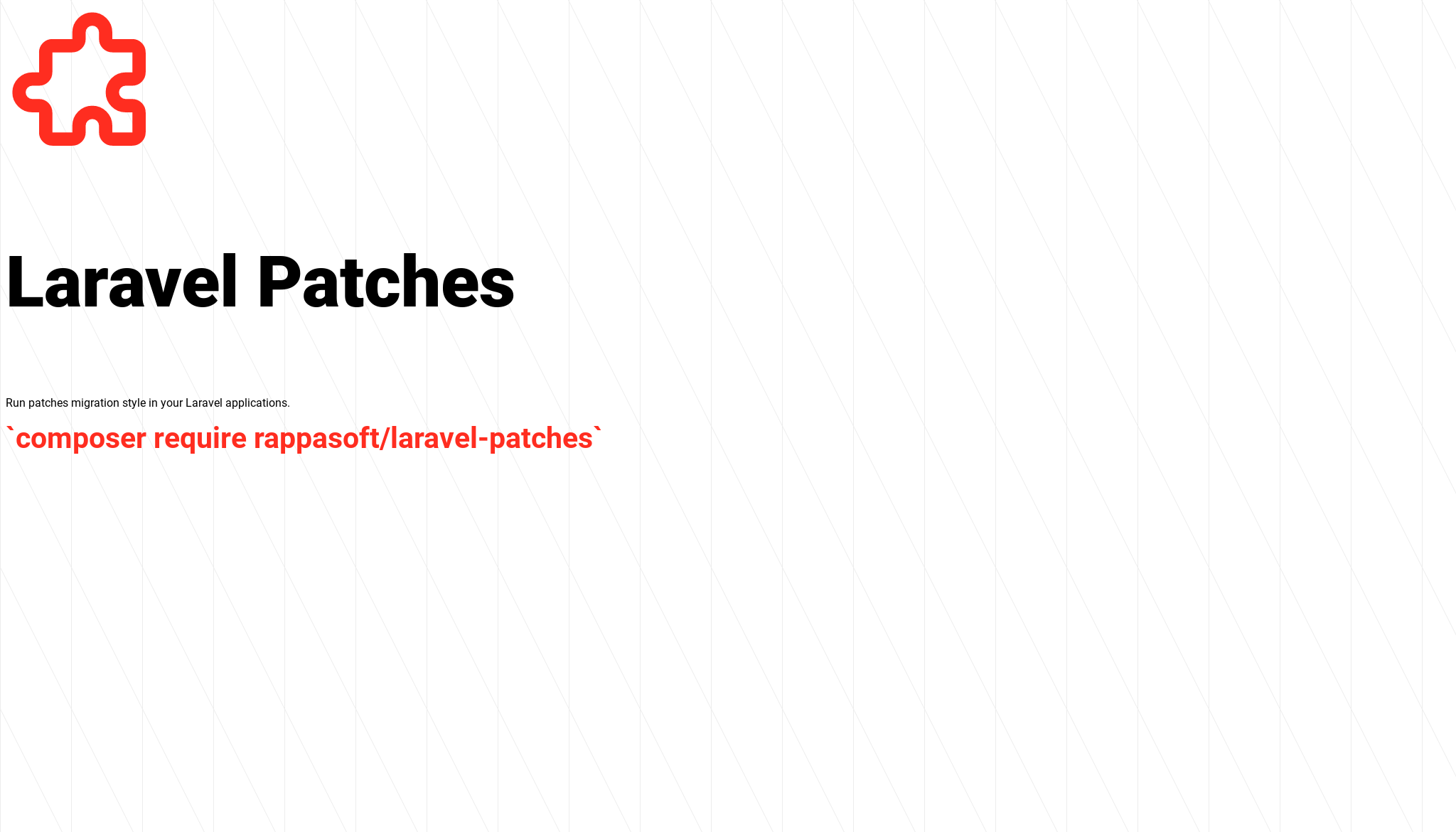 This package generates patch files in the same fashion Laravel generates migrations. Each file is timestamped with an up and a down method and is associated with a batch. You may run or rollback patches with the commands below.