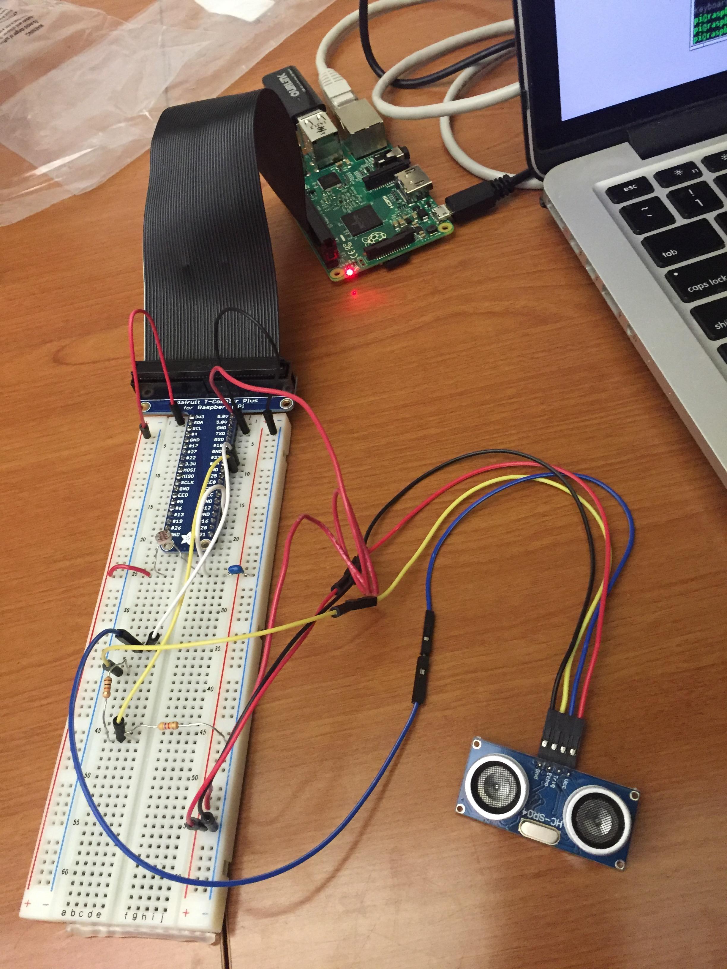 - Hook up ultrasonic sensor to pins 23 (TRIG) and 24 (ECHO)