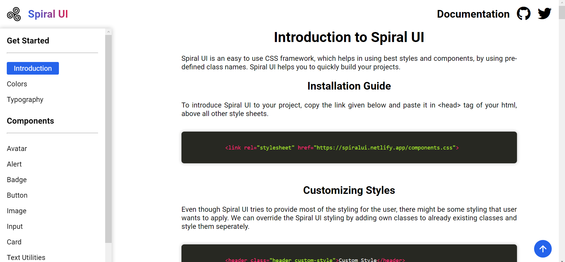 To introduce Spiral UI to your project, copy the link given below and paste it in tag of your html, above all other style sheets.