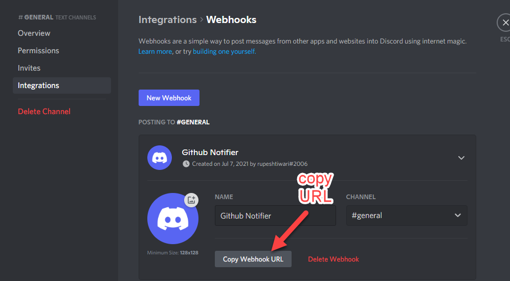 Now you can notice that we are able to post the avatar of the user from github to our discord channel.