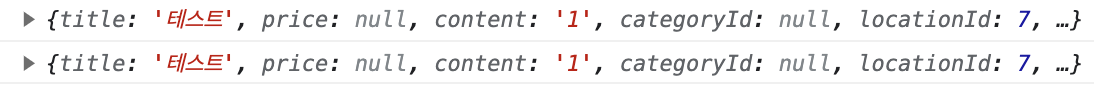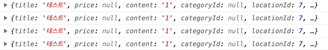 Trouble 3과 이어지는 과정으로 상품등록의 입력 컴포넌트들(자식)은 postObject를 전달 받고 있다.