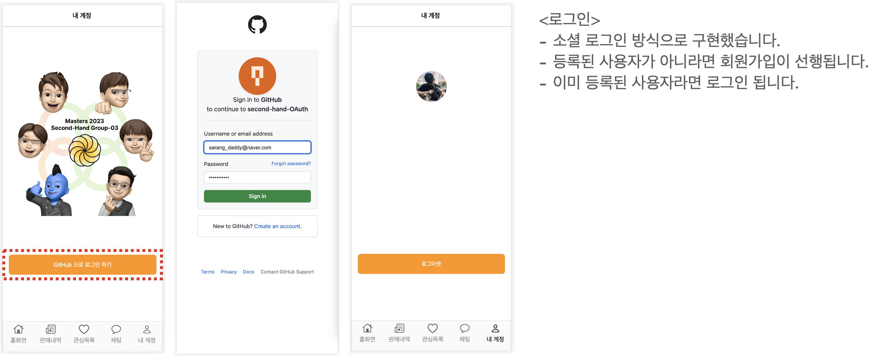 - 웹에서 "GitHub으로 로그인" 버튼 제공