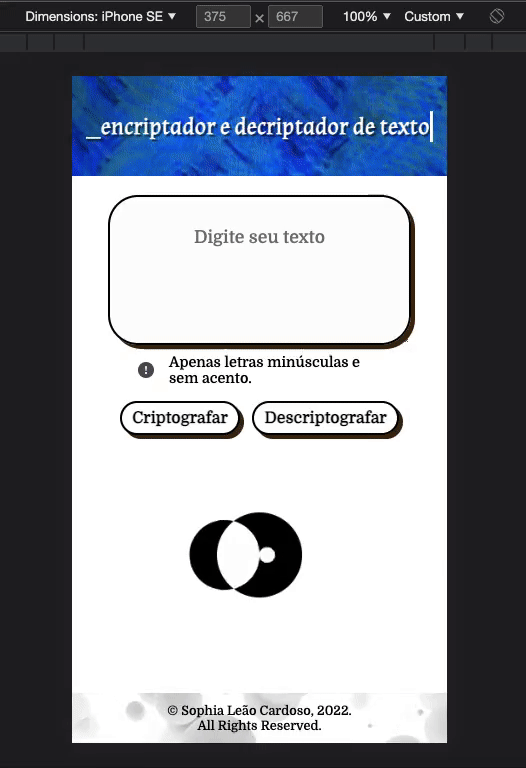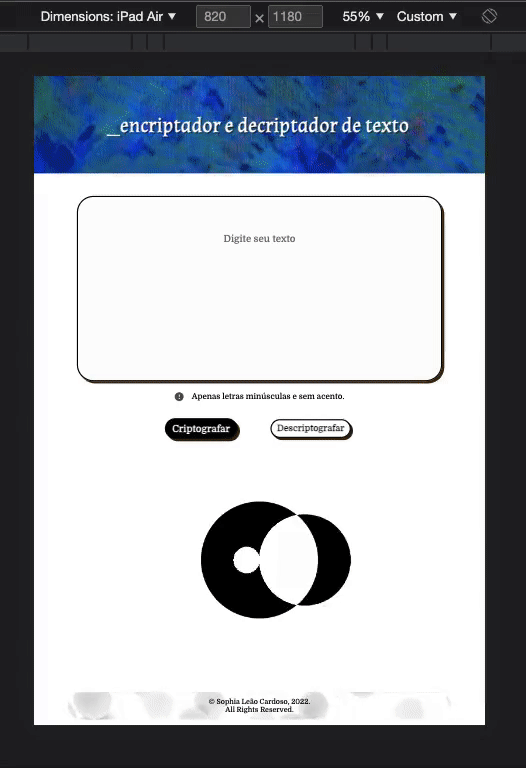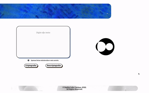 - A página deve ter campos para inserção do texto a ser criptografado ou descriptografado, e a pessoa usuária deve poder escolher entre as duas opções;