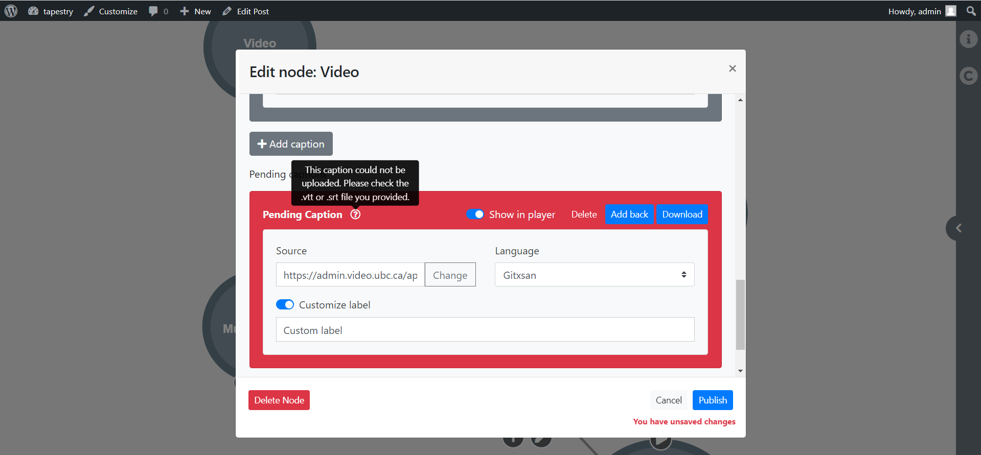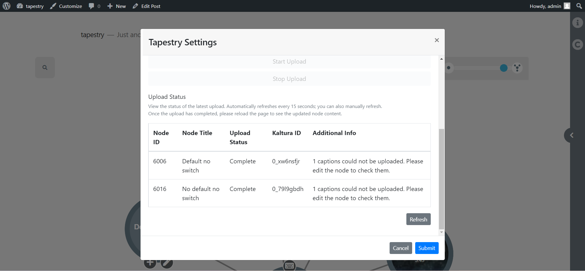user must submit it in the NodeModal, which loads data from Kaltura into