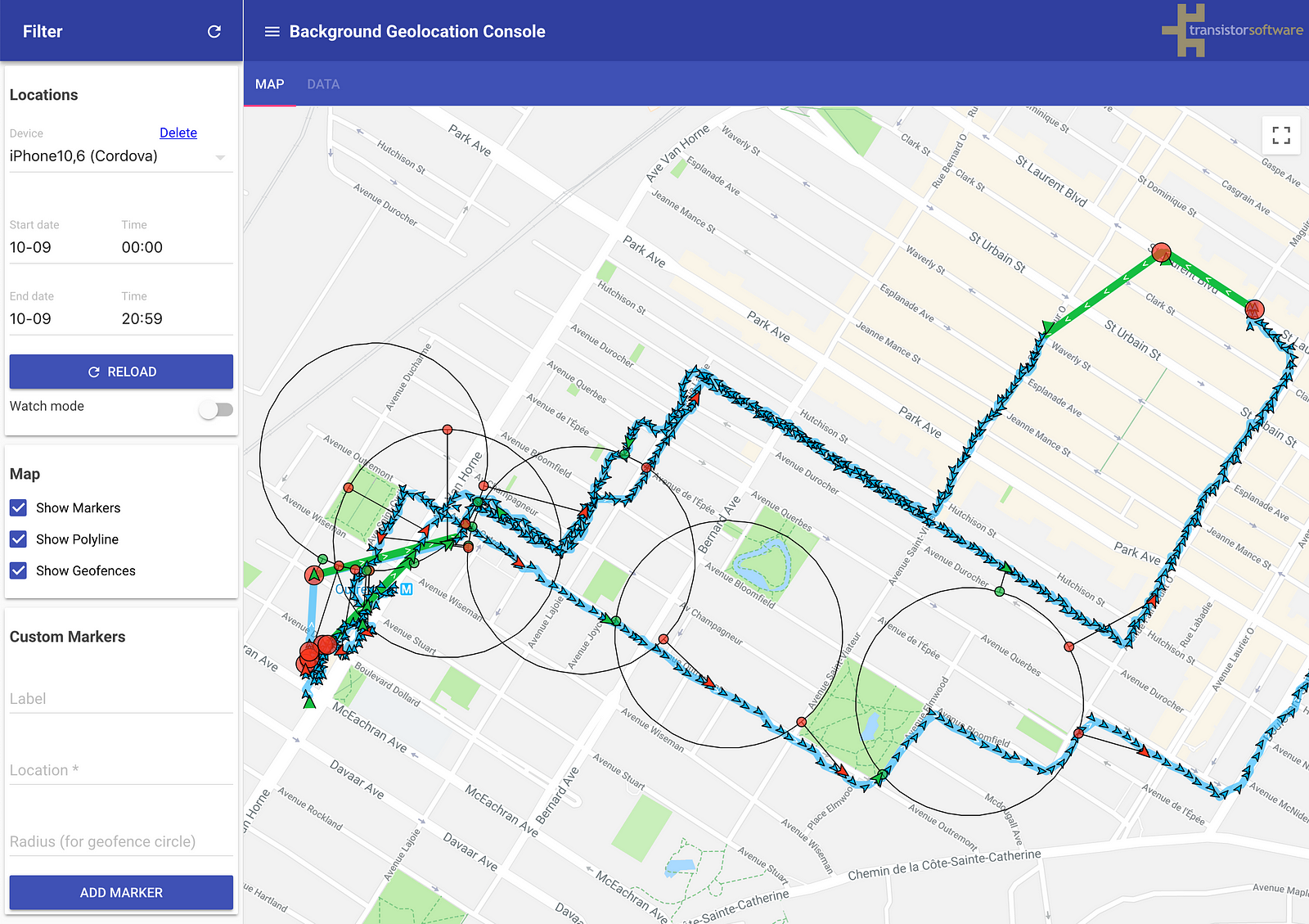 As you integrate the background-geolocation plugin with your app, you may find it useful to post locations to the test console to verify your integration.