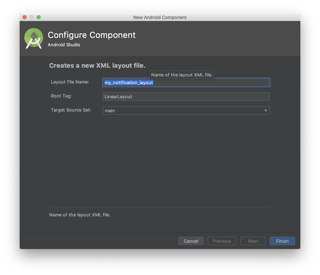 Enter any layout name. Your file will be created in the folder app/res/layouts: