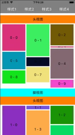 初始化仅三行代码,只需设置代理和样式,item的大小、头脚视图的大小、行列数以及间距都可以在对应样式的代理方法中自定义:
